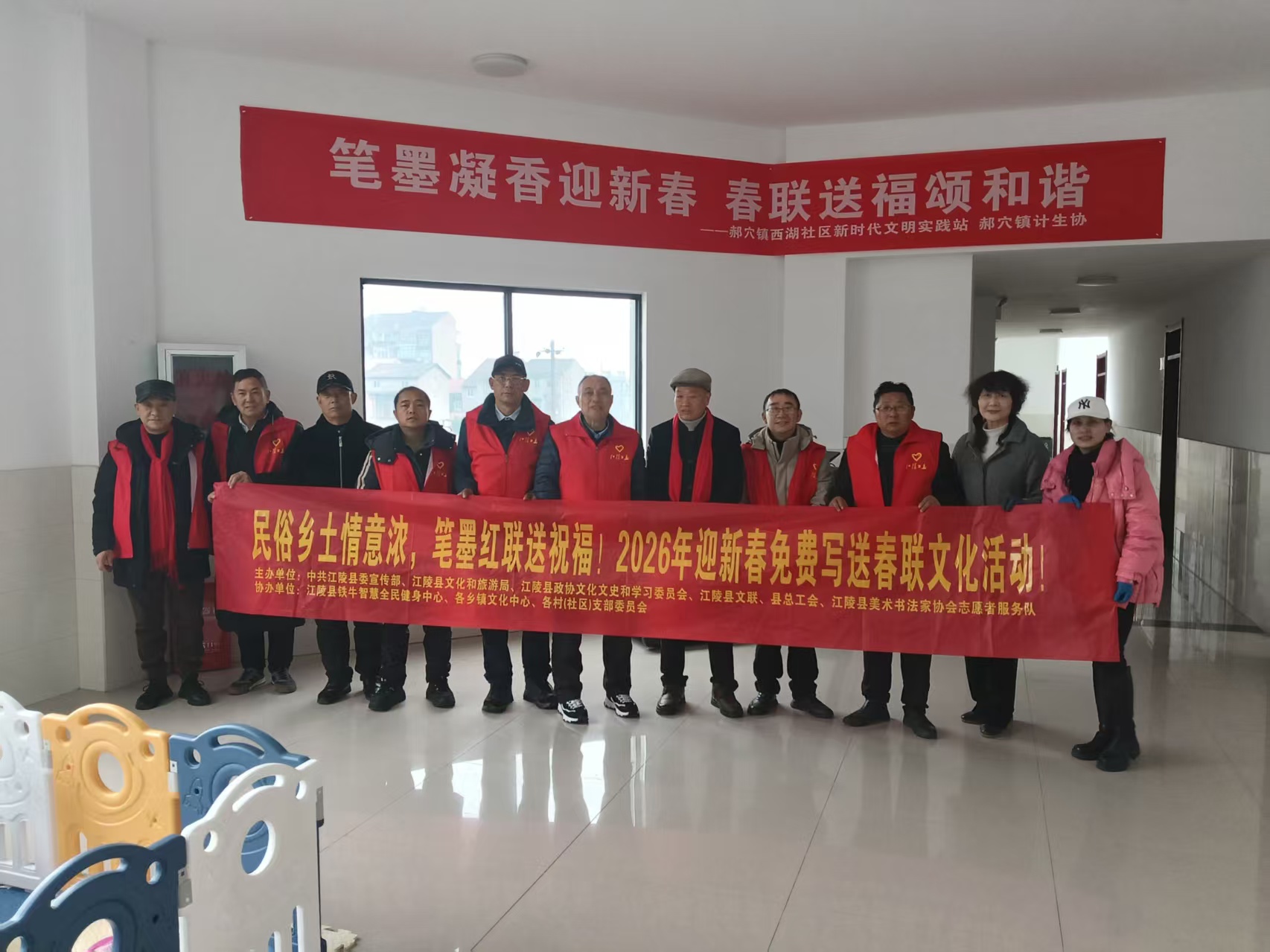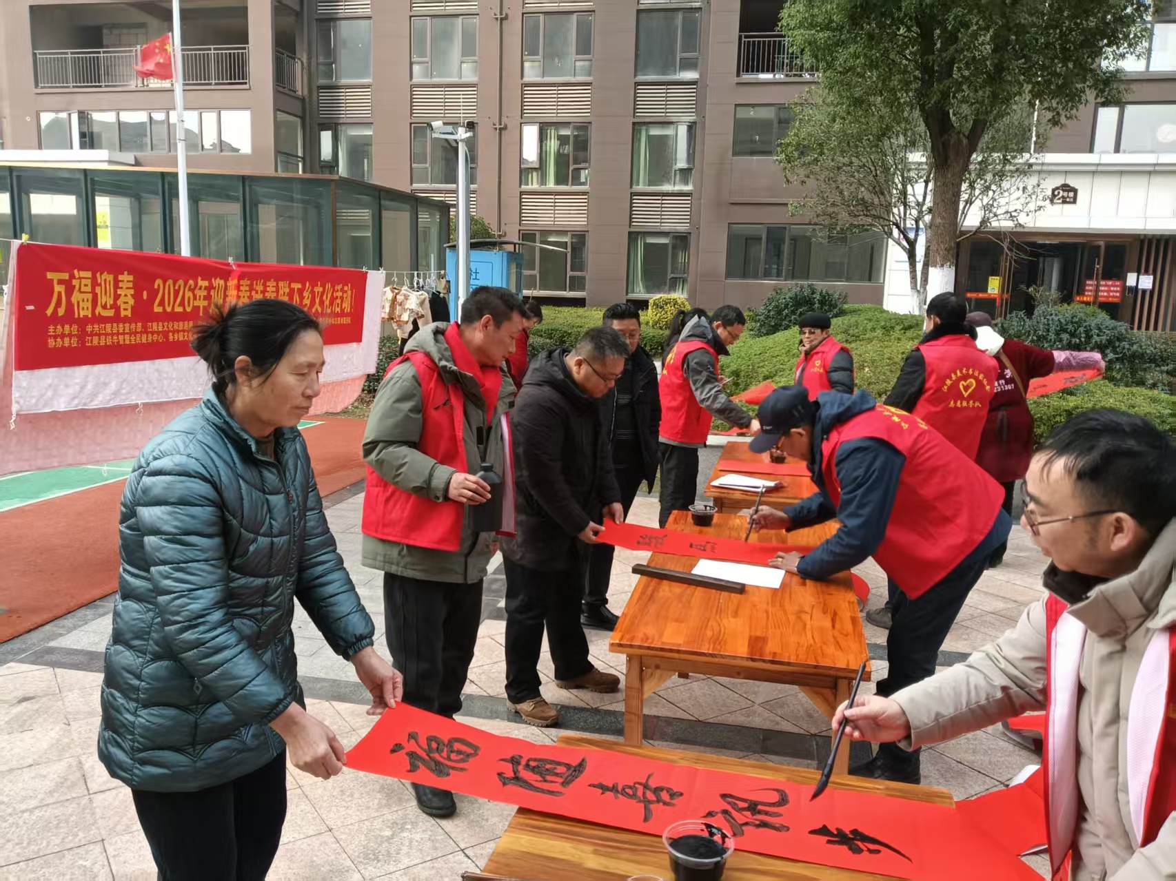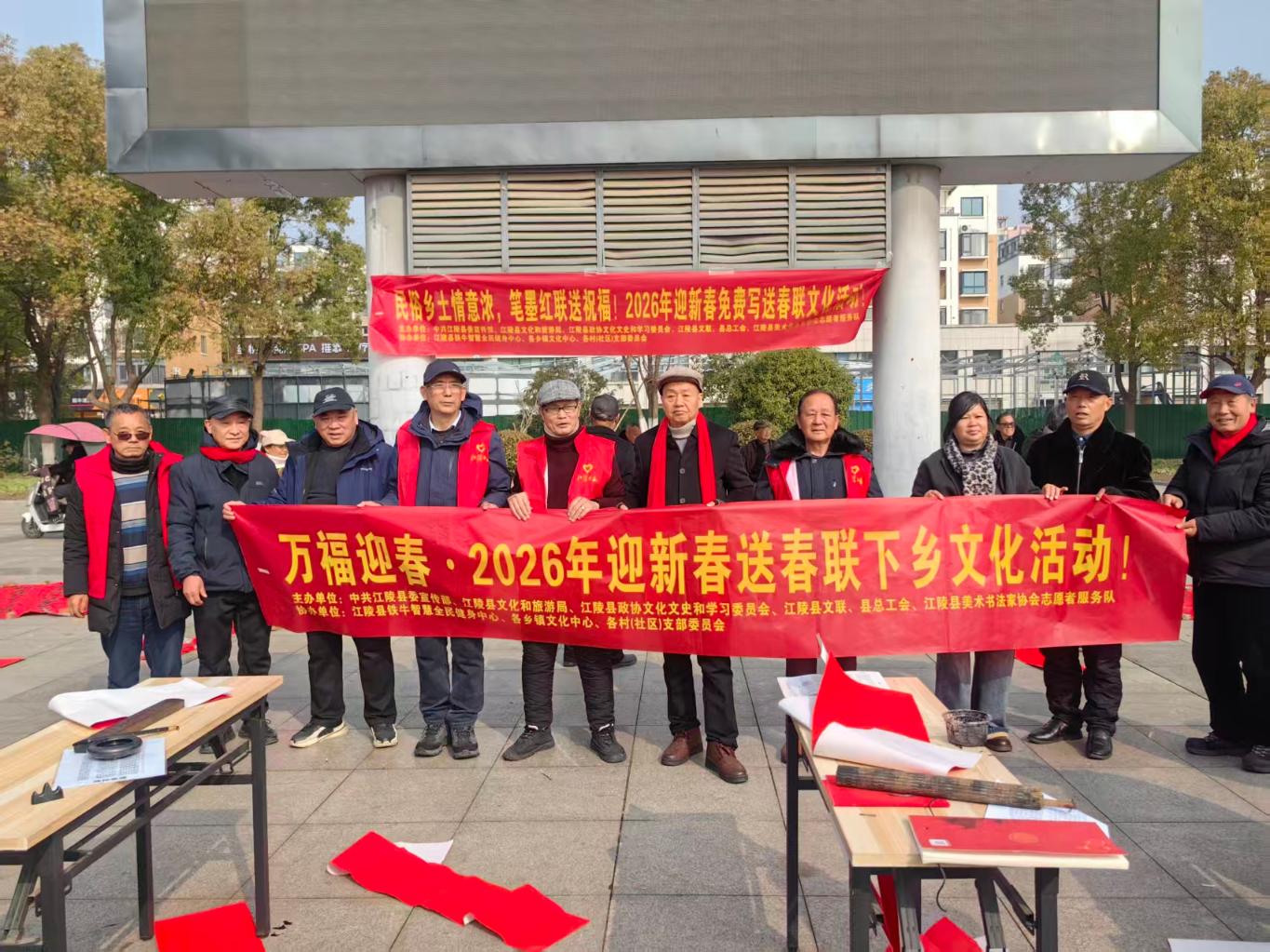 2026江陵迎新春免费写送春联活动暖心启幕!书法家与书法爱好者挥毫泼墨,将新春祝福凝于笔端。活动走进社区、乡镇,免费派送吉祥春联与福字,传承传统文化,营造浓厚年味,把温暖与喜庆送到群众身边。【服务要求】